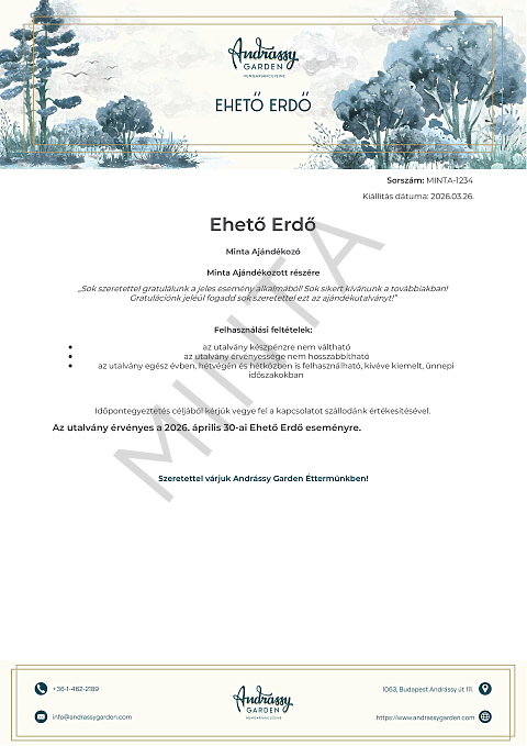Az ár tartalmazza az alkoholmentes italsort. Az árak forintban értendők és az áfát tartalmazzák.